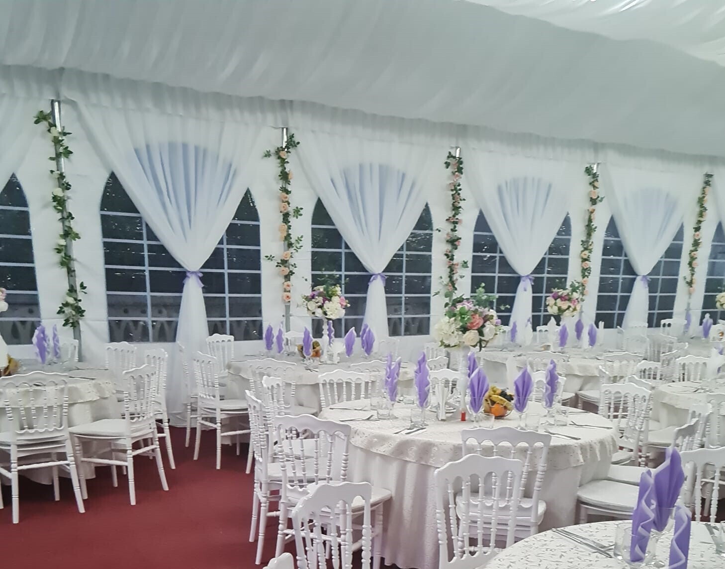 Sistem prindere : cu sarma (nu este inclusa in pret) introdusa pe canalele drapajului care va ajuta la prinderea/fixarea acestuia de scheletul cortului.